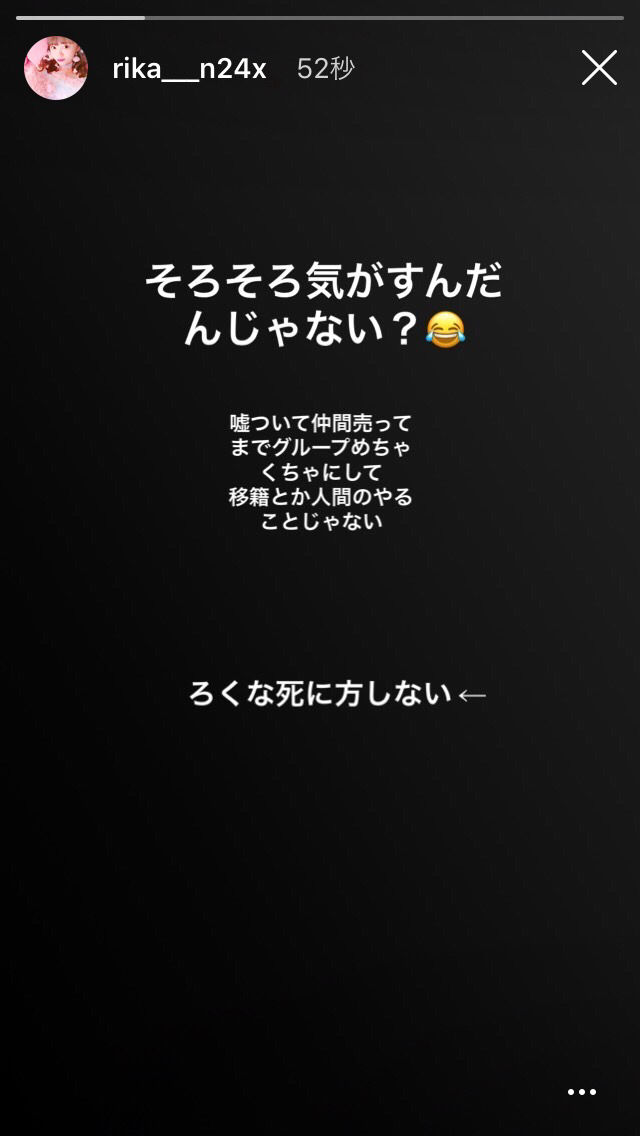 真っ黒な背景に「そろそろ気がすんだんじゃない? 嘘ついて仲間売ってまでグループめちゃくちゃにして移籍とか人間のやることじゃない ろくな死に方しない」という文面が書かれている。